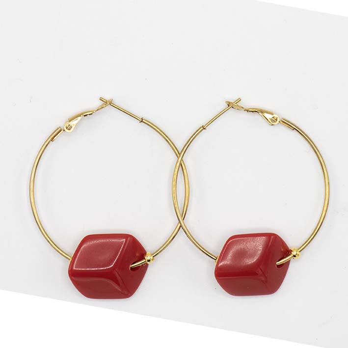 Hoop oorbellen met  verwisselbare Cubes Rood
