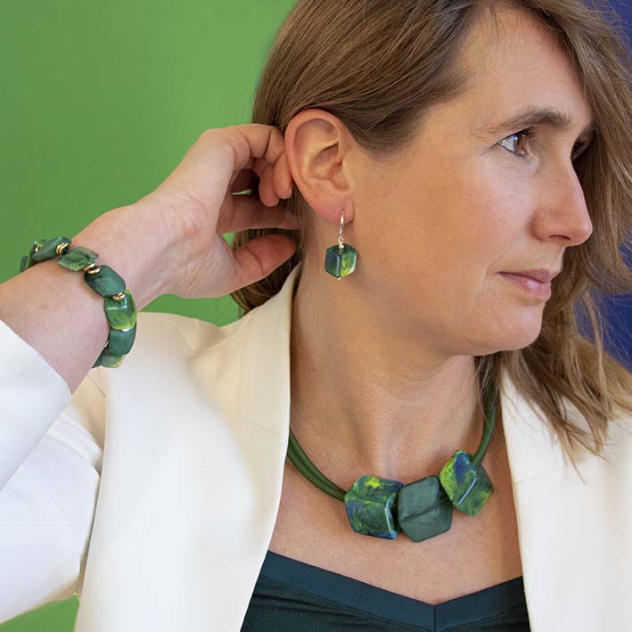Maak je look af met kant en klare bijpassende armbanden en oorbellen uit de MINI-Cubes collectie.