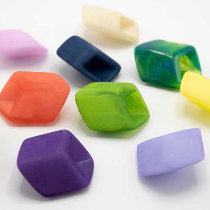 Modulaire sieraden in meer dan 60 kleuren – verwisselbare Cubes voor eindeloze combinaties.