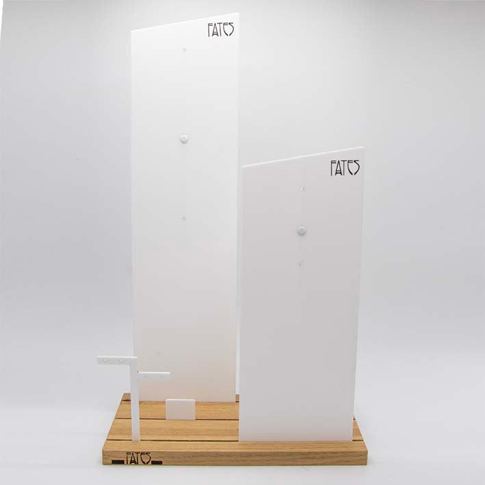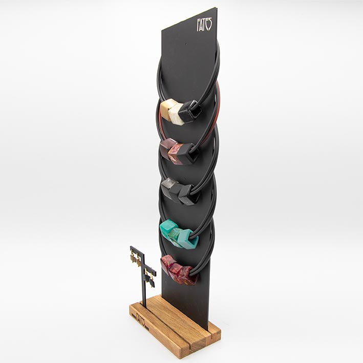 Onze displays zijn ontworpen met een handig rastersysteem, waardoor je meerdere kettingen op een compacte manier kunt ophangen. De houten rails zorgen voor een stevige basis en kunnen eenvoudig gecombineerd worden met andere modules.